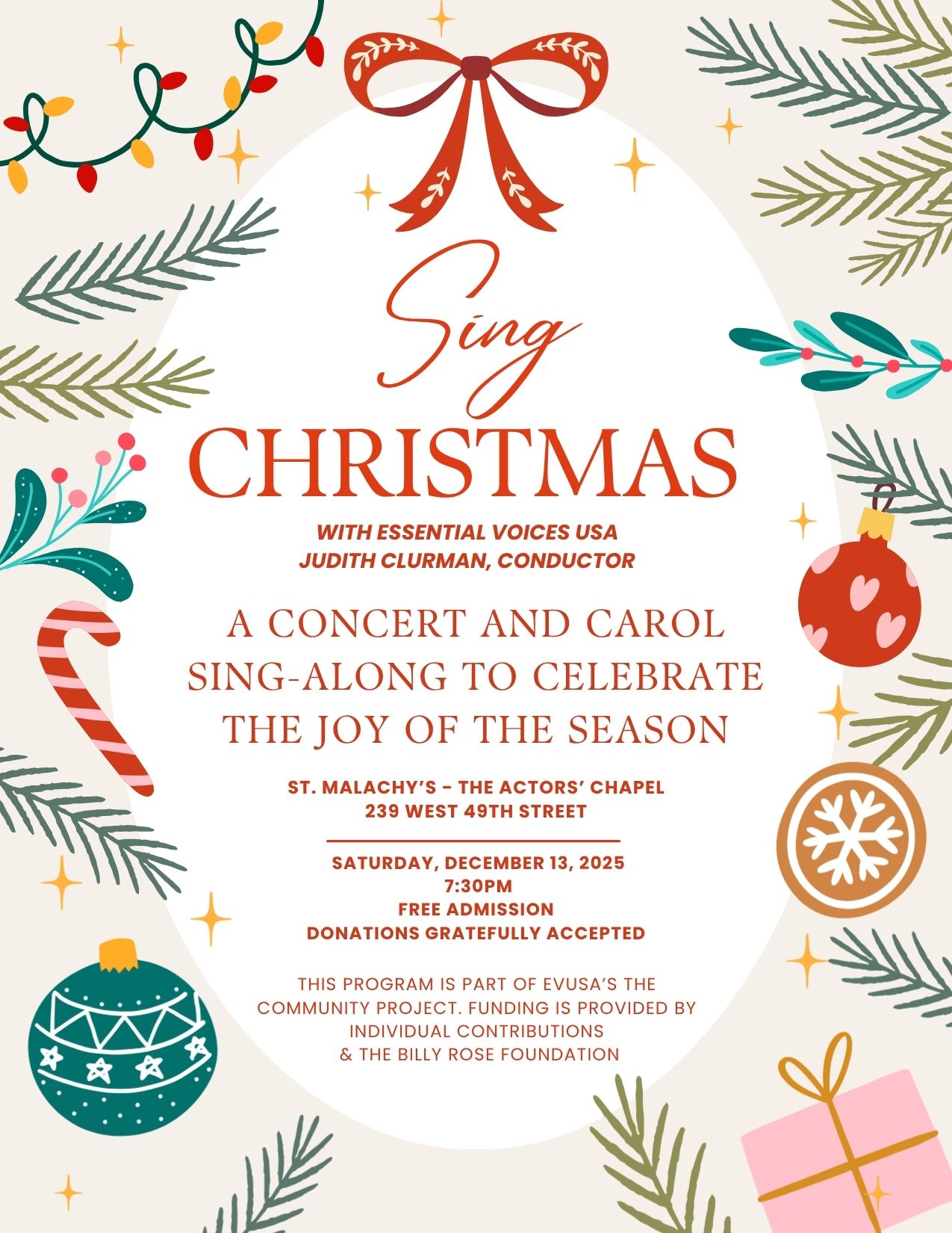 During the past concert seasons, EVUSA released their Christmas Joy and Holiday Joy recordings, sang at Carnegie Hall, performed community sing-alongs, and recorded newly commissioned music at the DiMenna Center. During the 2025-2026 season they will sing at Carnegie Hall, perform a holiday program at St. Malachy’s Church, and record. Their recording of Songs of Freedom: A Celebration of Chanukah will be heard at the Indianapolis Art Museum-Newfields holiday light show.